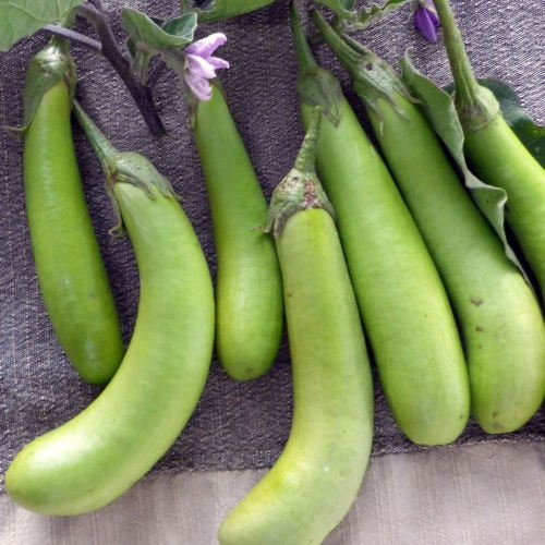 L’Aubergine Thai Longue Green est une variété traditionnelle originaire de Thaïlande, appréciée pour ses fruits longs, minces et d’un joli vert clair brillant. Sa chair tendre et douce, sans amertume, la rend parfaite pour les sautés, currys ou grillades. Précoce et très productive, elle donne de nombreux fruits même en climat tempéré, si elle bénéficie de chaleur. Sa culture est facile en pleine terre bien exposée ou sous abri chaud. Une variété originale et savoureuse.