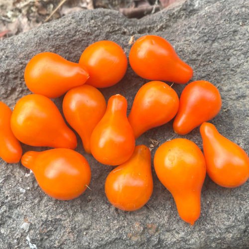 Originaire d’Irlande, la Poire Orange est une charmante tomate cerise en forme de petite poire, à la robe jaune orangée éclatante. Très productive, elle fructifie sans relâche du cœur de l’été jusqu’aux premières gelées. Sa chair douce, juteuse et peu acide en fait une excellente tomate de grignotage, idéale pour les salades ou les apéritifs. Elle se conserve très bien après récolte. Facile à cultiver, elle peut aussi aisément pousser en grand pot.