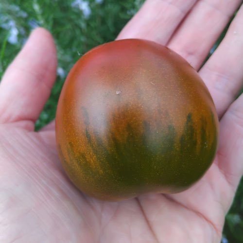 La Paul Robeson est une variété ancienne venue de Russie, réputée pour sa saveur riche et équilibrée. Cette tomate donne des fruits plutôt petits (100 à 150 g), à la chair ferme, juteuse et très parfumée. Elle se distingue par sa belle couleur sombre, brun-rouge, et une excellente tenue en culture. Très vigoureuse, elle résiste bien aux maladies et offre une production régulière jusqu’à l’automne.